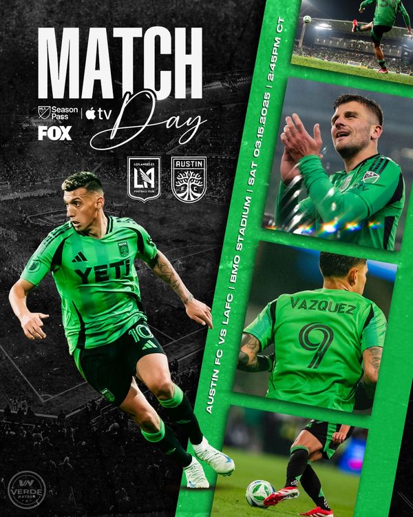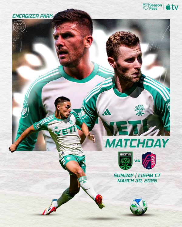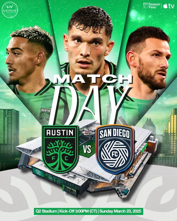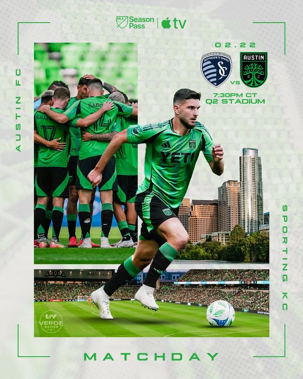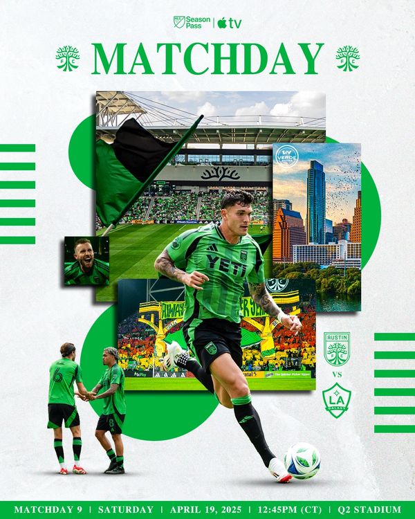 Soccer matchday announcement for May 17, 2025, at Q2 Stadium.